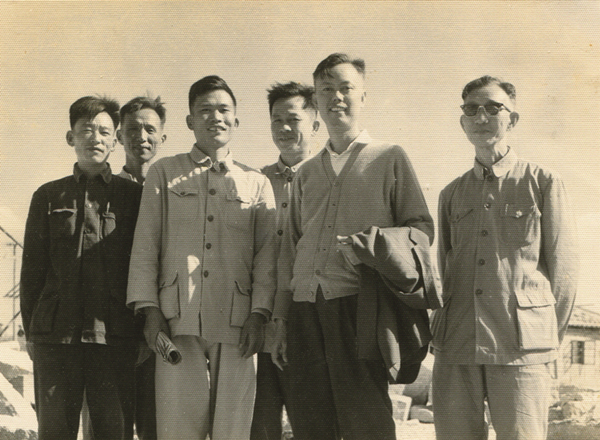 1961年11月14日,许东亮先生(右二)等人视察华大工地后留影。