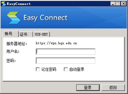 ”这个图标,再次登录VPN只需点击桌面上的“华大SSLVPN”,等待跳出下列窗口,输入用户名和密码。VPN登录采用信息门户用户登录方式(即工号学号/密码登录方式),分别在对应的文本框中输入点击“登录”。