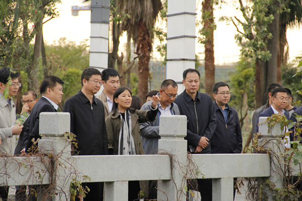 薛斌一行参观了我校厦门校区模型室;登临行政研发大楼26层,俯瞰校园全景,听取我校基于“功能湿地”理念的海绵校园建设情况介绍;到校内生态水系——湿地走廊和白鹭湖边,近距离考察我校生态河道和水处理系统样态。
