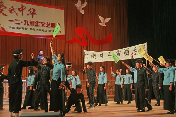 晚会围绕纪念“一二•九”学生爱国运动这一主题,分为“燃情岁月”“伟大远征”“青春征程”“扬帆新征”四个篇章。紧扣人心的独唱《党旗更鲜艳》,古韵十足的传统乐器合奏《山丹丹花开红艳艳》,情节跌宕的话剧《赤色侨魂》,融入现代说唱技巧的改编版藏族歌曲《北京的金山上》,生动展现了华夏儿女的爱国热忱。舞蹈表演《我的长征》配合抑扬顿挫的音乐,以老兵的回忆为线索,追溯自己的热血时代奋勇报国以及感慨耄耋之年“穷且益坚”的心态。舞蹈《响亮节拍》糅合了不同民族的特色舞蹈,展现了中华民族的凝聚力。在由境外学生共同表演的歌舞《Try Everything》中,演员们朝气蓬勃,活力四射,像是初升的太阳,让观众看到了希望与美好。他们用中文向这片土地献上最简单、质朴的告白:“我爱华大,我爱中国!”演出最后,见证了华侨大学建设发展的第一代教师康玉琛和年轻学子一同翻开“扬帆新征”篇章,展现华大人精神的传承与发扬。