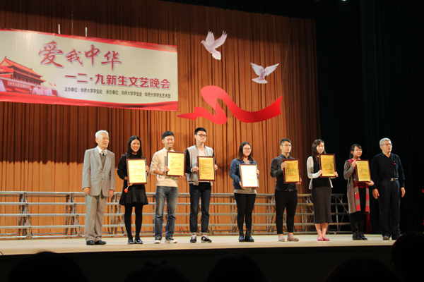 我校2016年纪念“一二•九”学生爱国运动81周年暨“爱我中华”新生文艺汇演由学生处主办,校学生会、学生艺术团承办。据了解,两校区共计79个节目参选晚会演出,经初赛和决赛的角逐评选出了一二三等奖、优秀奖、最佳编创奖和优秀组织奖等。信息科学与工程学院《响亮节拍》、经济与金融学院《北京的金山上》、华文学院《Try Everything》、工商管理学院《秋瑾》获2016年“爱我中华”新生文艺汇演非专业组一等奖;舞蹈类《金陵十三钗》等获专业组二等奖;化工学院《西游传说》、机电及自动化学院《乌兰巴托的夜》、哲学与社会发展学院《训练场上》等获非专业组二等奖;声乐类《龙文》等获专业组三等奖;工学院《Butterfly》、美术学院《外面的世界》、文学院《第十一位教师》等获非专业组三等奖。法学院《曙光》、数学科学学院《掌声落下》、经济与金融学院《长征》、旅游学院《陕》等获非专业组优秀奖;工学院《Butterfly》、政治与公共管理学院《赤色侨魂》、化工学院《忆往昔峥嵘岁月》、华文学院《Try Everything》获最佳编创奖;经济与金融学院、华文学院、信息科学与工程学院、化工学院、工商管理学院、旅游学院、音乐舞蹈学院获最佳组织奖。