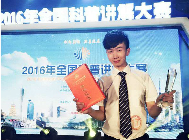 对于自己能获得全国科普讲解大赛一等奖、荣膺全国“十佳科普使者”称号,胡梓梁非常感谢学校老师的推荐。原来,他是在科技处老师的推荐下参加这一赛事的。