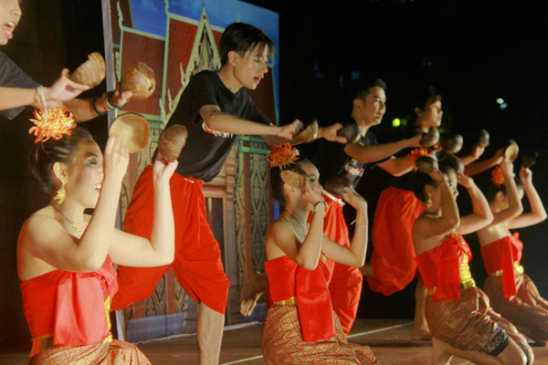 美丽的花灯随晚风轻轻荡漾在水面上,华美的服饰在灯光下流光溢彩,热情的歌舞吸引着所有人的目光……11月25日晚,华侨大学2016年东南亚文化展之泰国文化展在泉州校区四号篮球场开幕,来自泉厦两校区的泰国学生携手老挝、缅甸、印尼的学生一起,倾情演绎带有浓厚民族风情的节目,让人们领略东南亚文化的独有魅力。