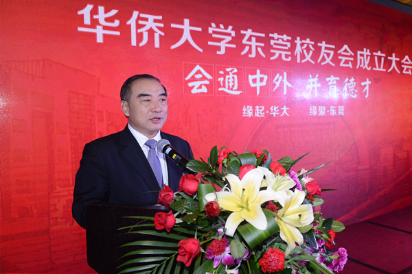 校长、校友总会会长贾益民代表学校以及校友总会向东莞校友会成立表示祝贺。他在致辞中称,华侨大学近年来在学科建设、人才培养等方面均取得显著成效,这些离不开校友们的关心、支持与奉献。