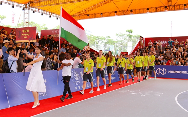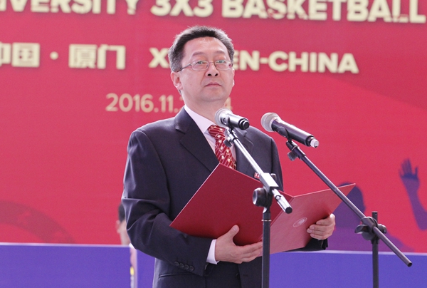 关一凡、奥列格•马迪钦先后致辞。杨立国宣布2016世界大学生三对三篮球锦标赛开幕。华侨大学副校长徐西鹏主持开幕式。