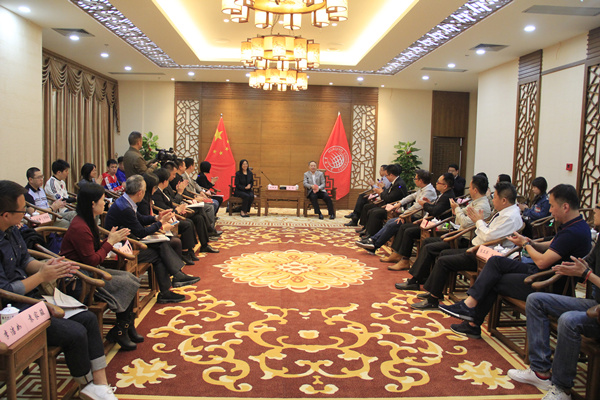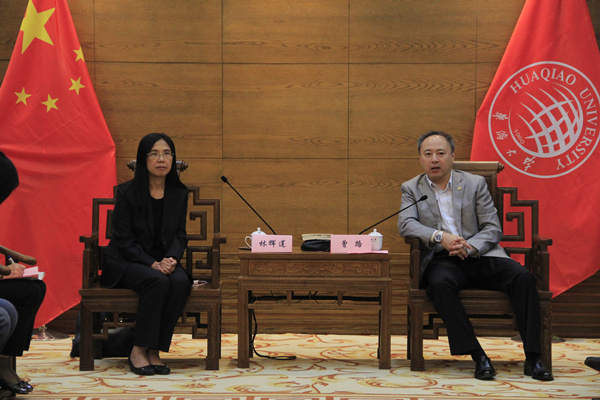 副校长曾路在行政研发大楼一楼会客室会见了澳门校友会与澳门教师访问团一行。他表示,澳门校友会是学校成立最早的校友会之一,在澳门社会作出了突出贡献。同时澳门校友会的校友十分热情,每次去澳门都感到特别亲切。此外,他也对现场澳门各中学的校长及教师表示欢迎,并对他们多年来向华侨大学输送优秀澳门学生表示感谢。