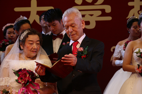 华侨大学法学院的退休教师康玉琛,是建校初期最早的一代教师。他于1960年进入华侨大学工作,1961年与夫人林菊花结为连理,今年正逢他们55周年的结婚纪念。当康玉琛老先生携夫人走上红毯时,师生们沸腾了,争相见证这段令人艳羡的爱情。“我见证了你的成长,你见证了我的人生。”康玉琛说,他们的儿孙都在华园出生,在华园长大,这里就是他们的家。