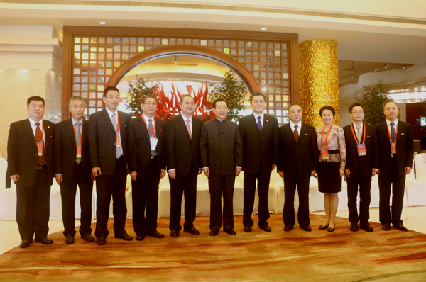 王刚董事长、李刚副董事长、郑新聪副董事长与校领导合影(雷伟军 摄)