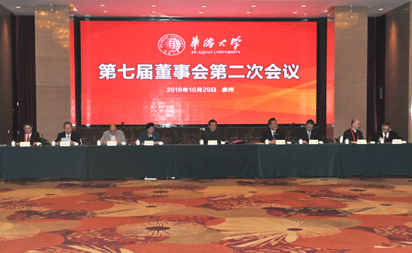 会议在泉州迎宾馆举行。来自中国内地及马来西亚、菲律宾、泰国、新加坡、澳大利亚、加拿大等国家和中国香港、澳门地区的43位董事会聚一堂,共商华侨大学建设与发展大计。