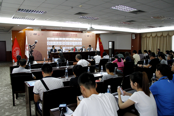 国际大学生体育联合会主席奥列格·马迪钦(Oleg Matytsin)、国际大学生体育联合会秘书长兼首席执行官埃里克·森超(Eric Saintrond)、中国大学生体育协会专职副主席申震、华侨大学校长贾益民等出席发布会,介绍联赛有关情况并回答记者提问。华侨大学副校长徐西鹏主持发布会。