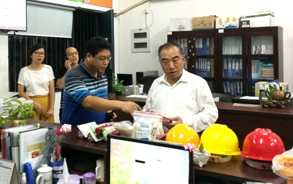 贾益民校长在防范台风应急指挥部了解学校相关部门防抗“鲇鱼”台风准备工作,并代表学校向全体坚守在防抗台风第一线的相关部门备勤同志表示慰问。