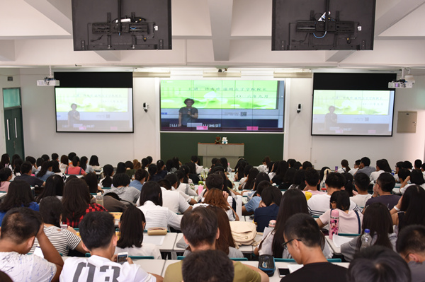 由校董黄天中博士捐建的沉浸式远程互动直播教室,日前迎来第一批体验者。来自新闻与传播学院、哲学与社会发展学院的232名新生,在厦门校区C5-103教室聆听了温州女子学院院长许秀珍教授讲授的《职业生涯规划》第一讲“活出自我,活出尊严”,成为了在线精品共享课的首批学员。