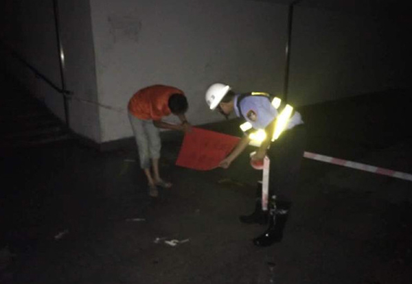 18日上午7时许,保卫处再次组织校警队员前往地下通道消除蛇患,组织人员进行地下通道积水抽水作业,保证师生通行安全。下午5时,地下通道积水被抽干,道路恢复正常通行。