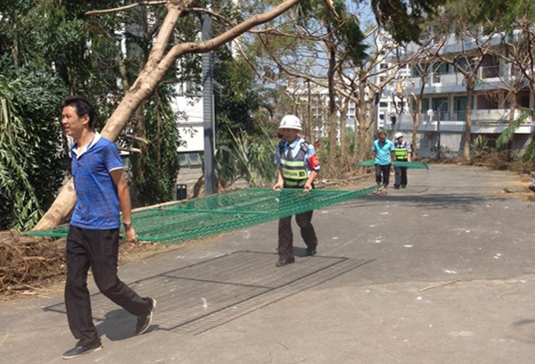 此次台风对厦门校区造成了严重的影响,全体校警队员协力维护好灾后重建及校园正常教学生活秩序:在校园内设置“保卫处临时校园驻巡点”,投入安保力量,加大对受灾严重区域的巡查力度;设置防“高空坠物、溺水触电、财物损失”等安全警戒线及警示牌,防止二次伤害;组织人员清理空中易坠物件;对倒塌的围墙采取临时修复措施,设置隔离护栏;进行道路清障,清理残枝断树;对全校监控、报警、消控等设施设备进行全面排查和线路检测,发现损坏立即组织抢修;加强消防安全隐患排查,重点做好实验室危化品的隐患排查整治及巡控力度。