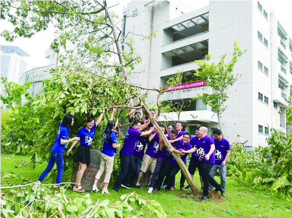 面对风灾,华侨大学广大境外生也自发组织起来,为心爱的华园贡献一份力量。