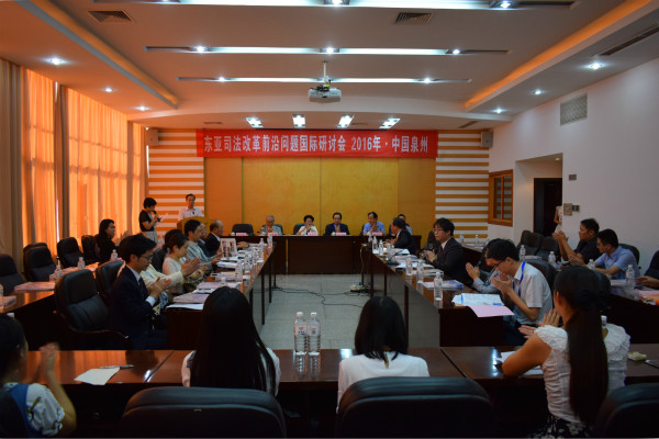 由华侨大学、日本桐荫横滨大学主办,东亚法律文化中心承办的东亚司法改革前沿问题国际研讨会,9月23日在陈嘉庚纪念堂二楼会议室举行。40余名来自中国、日本的学者、律师、检察官、法官、教授齐聚一堂,就“东亚司法改革前沿问题”主题进行交流。