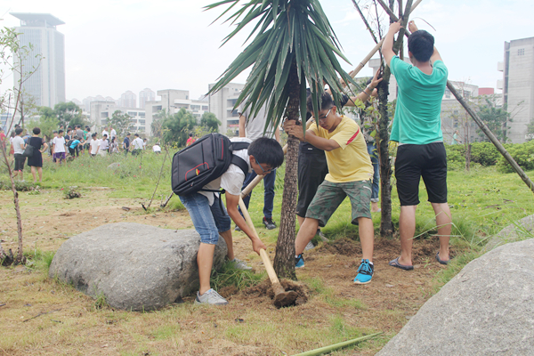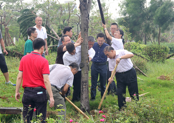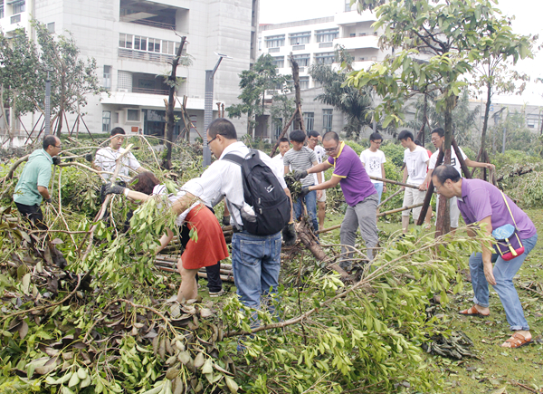 9月18日是台风灾害后,也是中秋假期后的第一个工作日,我校继续发动全校的力量进行灾后恢复重建工作。新老生、教职员工、物业工作人员等积极投入到受损较严重的绿化园区等的重建中。