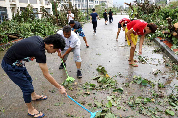 发起志愿服务活动的林志祥谈道:“我来自印尼,以前经历过很多次台风,但都没有这次严重,我看到校园里乱糟糟的,去哪里都不方便。中国是我第二个家,不分你的房间还是我的房间,同学们都是我的朋友,应该帮助他们,一起打扫也可以减轻宿舍阿姨的工作量。我能做的很少,只有出一份力量帮助学校。”今年大二的张志宏说:“看到台风来临,很多未经历过台风的同学感到十分害怕,觉得似乎末日来临,为了减轻大家的恐惧,不让大家感到孤单,我们在台风过后就组织大家一起劳动。”