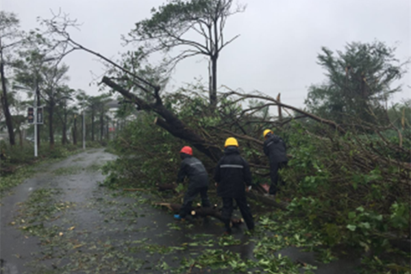 得知厦门校区树木倒伏严重,工人、用具和重型设备不足后,泉州校区绿化人员在全力做好泉州校区断枝处理和倒伏乔木扶正的同时,紧急抽调和外聘30余名绿化工人带着油锯和高空锯赶到厦门校区进行支援。