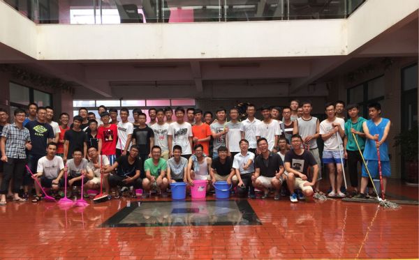 土木工程学院组织爱心志愿服务队,并发布“我的华园我的家”行动宣言,带领学生打扫了实验室及办公区域。