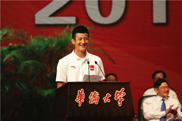 “什么?谌龙、洪炜真的来啦!”刚刚步入华园,正在参加华侨大学泉州校区开学典礼的大一新生们便收获了惊喜。9月4日上午,里约奥运会羽毛球男子单打冠军、我校学生谌龙,里约奥运会羽毛球男子双打第四名、我校学生洪炜来到了开学典礼现场,与大一新生们共度大学开启的美好时光。