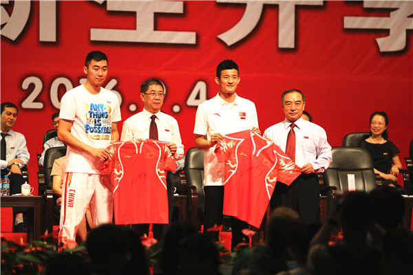 谌龙、洪炜的授课老师代表王丽霞、陈少牧也被请到了活动现场。谈起自己的学生在奥运赛场上获得佳绩,两位老师开心得合不拢嘴,纷纷表示“非常高兴”。王丽霞告诉记者,“谌龙不仅训练刻苦,对待学习也很认真、很谦逊,经常和我讨论专业上的问题,就和普通学生一样。”