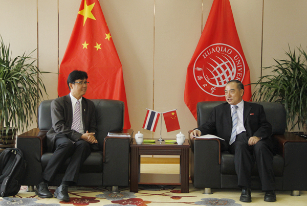 6月29日上午,校长贾益民、副校长曾路在厦门校区会见来校访问的泰国兰实大学副校长那列,共同探讨双方合作交流事宜。
