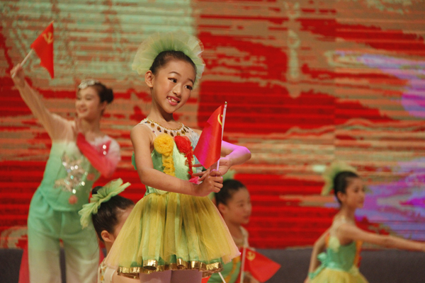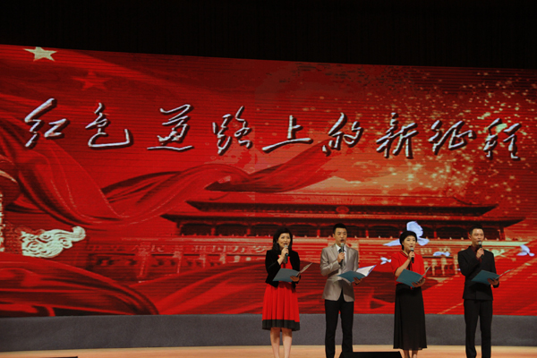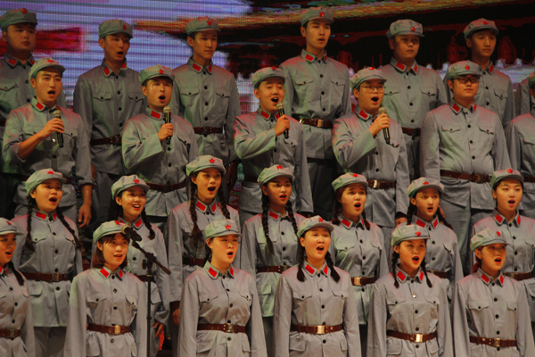 激情洋溢、充满动感与张力的二十四节令鼓表演拉开了演出的序幕。合唱《七律•长征》再回首长征路上的种种艰难险阻,简短的五十六个字却尽显中国共产党无所畏惧的万丈豪情。《党旗更鲜艳》《党啊,亲爱的妈妈》《没有共产党就没有新中国》等一首首耳熟能详的革命歌曲把人们的思绪又带回了那个战火纷飞,革命英雄为实现中华民族解放而抛头颅、洒热血的年代,令人激动。