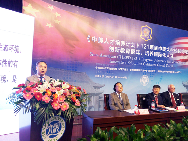 6月15日,中教国际教育交流中心、美国州立大学与学院协会在河南大学联合举办《中美人才培养计划》121项目2016年年会暨第十三届学生毕业典礼。本届年会以“创新教育模式,培养国际化人才”为主题,来自中美86所(美方20所、中方66所)项目高校的260多名代表齐聚百年老校,共商中美高等教育交流发展大计。