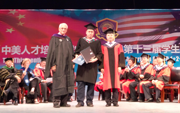当天下午,曾路出席了《中美人才培养计划》121项目第十三届学生毕业典礼,并与美方合作高校领导一同为我校121项目毕业生颁授中美双学位毕业证书和学位证书。据了解,在本届121项目210多名毕业生中,我校有7人,其中3人获评“2016年度优秀毕业生”。