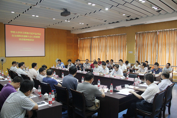 6月16日上午,我校在厦门校区召开座谈会,学习贯彻习近平总书记在全国科技创新大会上的重要讲话精神。校长贾益民、副校长徐西鹏出席,学校有关职能部门、学院、研究院的主要党政负责人及分管科研领导、教师代表等与会。
