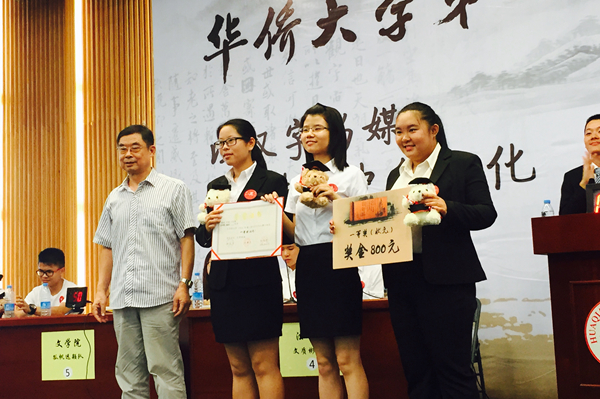 5月27日晚,华侨大学第二届汉字文化大赛决赛在陈嘉庚纪念堂科学厅举行。经过现场六轮激烈较量,华文学院代表队力压群雄,赢得本次大赛的状元;文学院代表队和机电学院代表队发挥出色,获得榜眼称号;经济与金融学院代表队、旅游学院代表队和法学院代表队获探花称号。