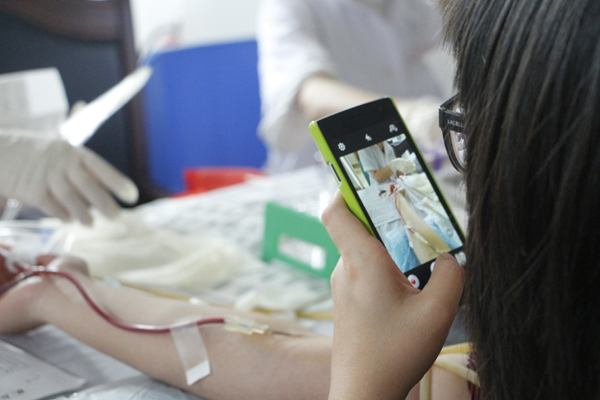 用手机记录下自己献血的一刻