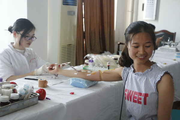 经济与金融学院2015级学生侯冬梅尽管手臂上还压着止血棉签,但脸上却显露出激动和兴奋的神情,这是她第二次献血。她兴奋地说着,“感觉献血是一件能够回报社会的事,很有意义。小时候体弱多病,现在身体好了,能来献血,算是圆了童年的一个愿望吧。”