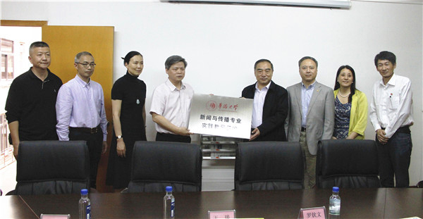 我校与电视都市时尚频道共建“新闻与传播专业实践教学基地”授牌仪式现场