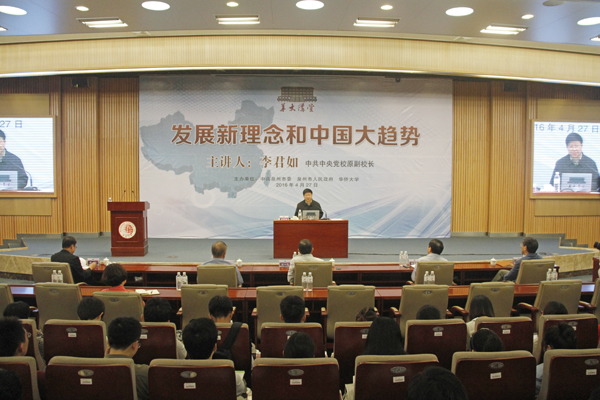 4月27日上午,“华大讲堂”第59讲在陈嘉庚纪念堂科学厅开讲。中央党校原副校长李君如研究员第二次做客“华大讲堂”,作《发展新理念与中国大趋势》专题报告。