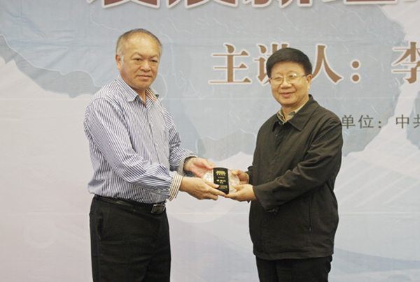 张建生为李君如颁发“华大讲堂”主讲嘉宾纪念牌