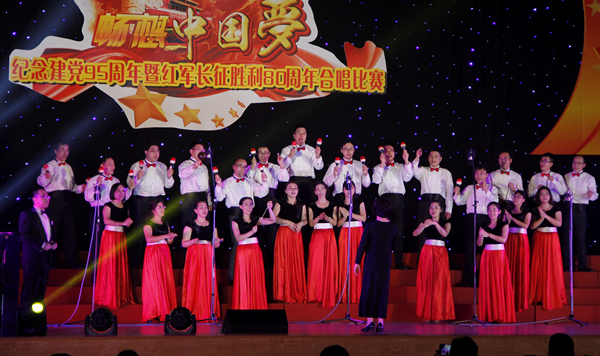 在厦门校区,伴随着低沉的钢琴前奏,化工学院代表队首先亮相,《阳关三叠》和《黄河船夫曲》雄浑有力,歌声时而低沉时而悠扬,寄望家国太平,国泰民安。土木工程学院献上的《军歌嘹亮向太阳》充满激情与斗志、《Adiemus》悠扬深情。随后,来自华文学院港澳台八十位预科同学组成的华文合唱团新编的《游击队歌》与流行歌曲《红日》巧妙结合,向革命先烈致敬。计算机学院代表队是由72名党员及入党积极分子组成的合唱团,他们饱含盛情地带来《跟着共产党走》和《让世界都赞美你》,一袭红裙,不失柔情,内敛白衣,铿锵有力,向艰苦卓绝奋斗的前辈看齐。在建筑学院代表队的《四渡赤水出奇兵》和《瑶山夜歌》歌声中,演唱者们的双手上下起伏,犹如只只白鸽飞翔,托起了民族的希望,在和平年代用歌声把长征的精神再次歌颂。12支学院代表队伍全部出场之后,由我校教师组成的教工合唱队与音乐舞蹈学院的友情演出为合唱比赛划下了完美句点。