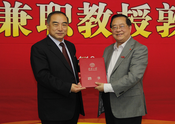 贾益民为袁南生颁发华侨大学兼职教授聘书