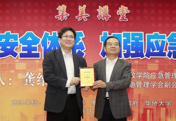 12月24日上午,国家行政学院应急管理培训中心主任、中国应急管理学会副会长龚维斌教授应邀做客“集美讲堂”第6讲,做题为“健全公共安全体系 加强应急管理工作”的专题报告,为我校师生及集美区领导干部上了一堂生动的公共安全课。