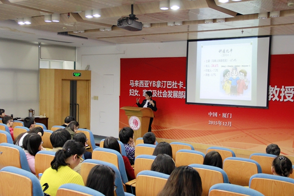 12月27日,马来西亚妇女、家庭及社会发展部副部长周美芬受聘我校客座教授,校长贾益民为其颁发聘书并佩戴校徽。敦聘仪式在厦门校区举行。