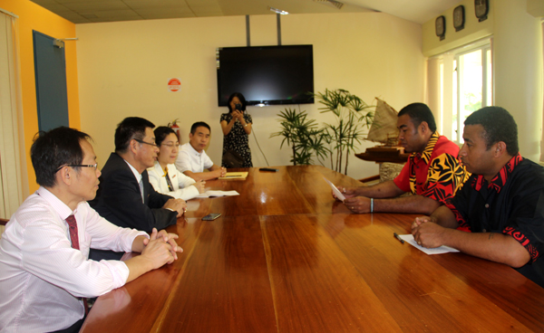 吴季怀一行分别拜会斐济总理府常秘及斐济外交部礼宾司司长,介绍华侨大学的办学宗旨、特色及发展概况,并表达学校为斐济建设培养华侨、华人及高级人才的愿望,邀请斐济方面派员参加华侨大学举办的“外国政府官员中文学习班”,双方就如何为斐济政府官员进行短期的语言、教育、经贸等科目的培训达成多项共识。