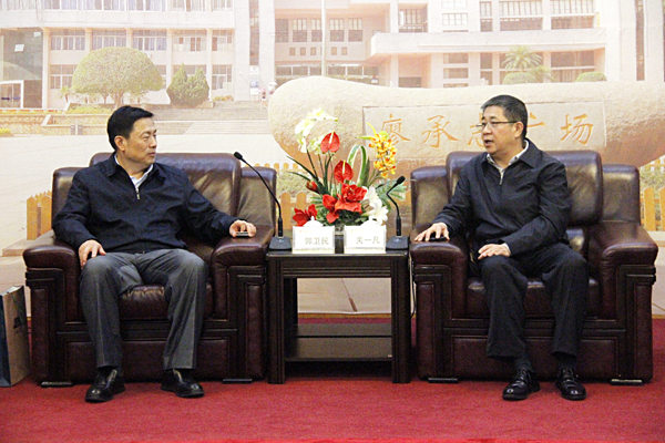 关一凡向郭卫民一行介绍学校情况