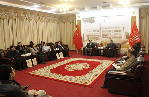 12月12日下午,中宣部部务会议成员、国新办副主任郭卫民,光明日报总编辑何东平,光明日报副总编辑沈卫星,外交部发言人、新闻司司长陆慷,中国记协书记处书记王冬梅等一行访问我校。校党委书记关一凡在泉州校区陈嘉庚纪念堂二楼接待室接待来宾。