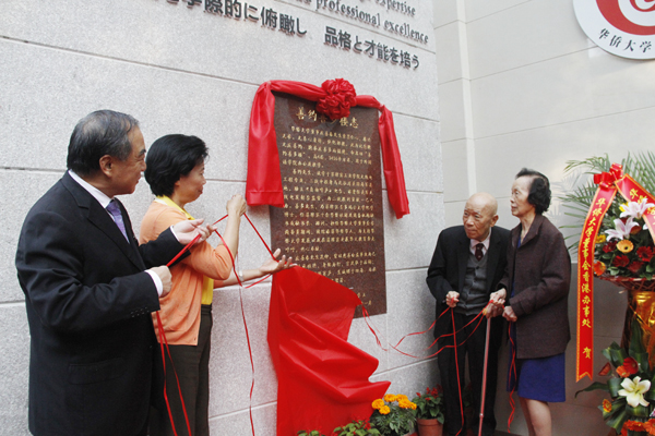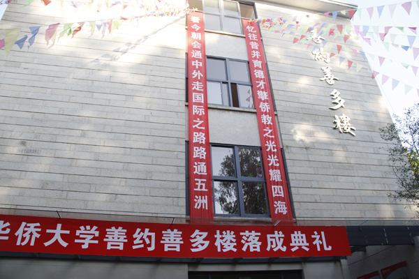 11月26日下午,由香港名医、我校董事会董事庄善春捐资襄建的善约善多楼落成典礼在泉州校区举行。我校数百名师生用鲜花与掌声在新落成的善约善多楼前欢迎庄善春、郑启銮伉俪及其亲属的到来。我校原校长庄善裕、夫人刘宝臣,庄善多先生夫人陈秀华,全国侨联副主席、福建省侨联主席王亚君,福建省侨联副主席陈世海,福建省侨办侨政处处长俞鸿彬,泉州市外事侨务办公室副主任林志彬,丰泽区外事侨务办公室主任杨志强,校长贾益民,党委书记关一凡,副校长刘斌、彭霈以及学校相关职能部门负责人与部分师生代表出席典礼。副校长曾路主持落成典礼。