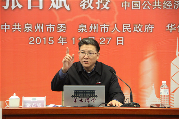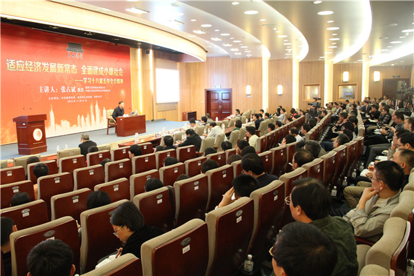 2015年10月召开的党的第十八届五中全会通过了《中共中央关于制定国民经济和社会发展第十三个五年规划的建议》。11月27日下午,国家行政学院张占斌教授做客“华大讲堂”第54讲,以“适应经济发展新常态,全面建成小康社会”为题,解析十八届五中全会精神。