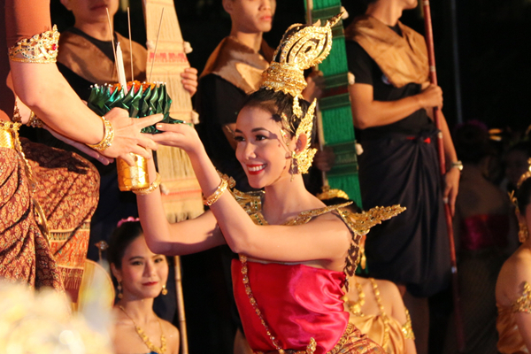 晚会一开场,泰国的留学生们穿上精美的传统民族服装,通过精彩的表演,带领大家回到八百多年前的素可泰王朝,讲述水灯节的由来。