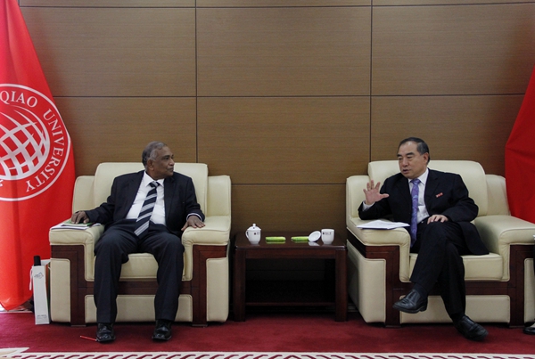 11月4日上午,校长贾益民在厦门校区会见了斯中社会文化合作协会主席英德拉南德•阿贝塞克拉先生,双方就海上丝绸之路研究相关领域的合作展开探讨。双方在共建海上丝绸之路南亚研究中心、推动华大同斯里兰卡相关高校的紧密合作、举办斯里兰卡政府官员中文培训等方面达成多项共识。
