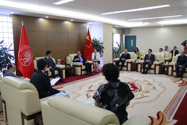 签约前,贾益民会见了内藤二郎一行,双方就学生交流、教师交流以及联合人才培养等方面进行探讨并达成共识。