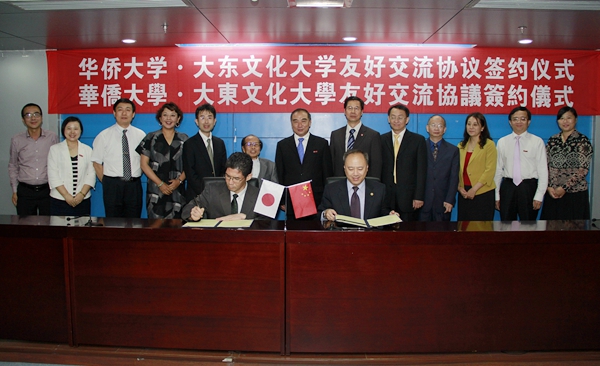 签约仪式在厦门校区举行,我校副校长曾路、大东文化大学副校长内藤二郎分别代表双方签字。我校校长贾益民,相关部门负责人见证签约。
